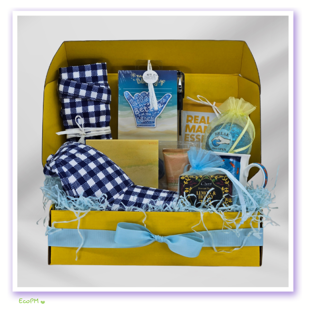 Indulge in the warmth of our Sunny Serenity Gift Box, a curated collection that combines vibrant summer colors and thoughtful items, making it an idyllic gift for anyone who appreciates creativity and stylish flair. This box is thoughtfully designed for those who love a touch of the coastal life, infused with elements that resonate with a Warm & Cheerful Personality, Playful & Energetic Personality, and Classic & Style Personality.